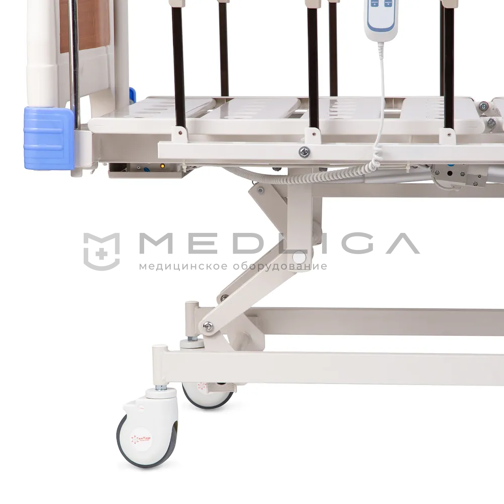 Пультом ДУ настраивается и высота положения ложа. Эта функция позволяет выбирать наиболее удобное положение для проведения лечебных процедур, что значительно упрощает уход за пациентом и его самостоятельное использование кровати.